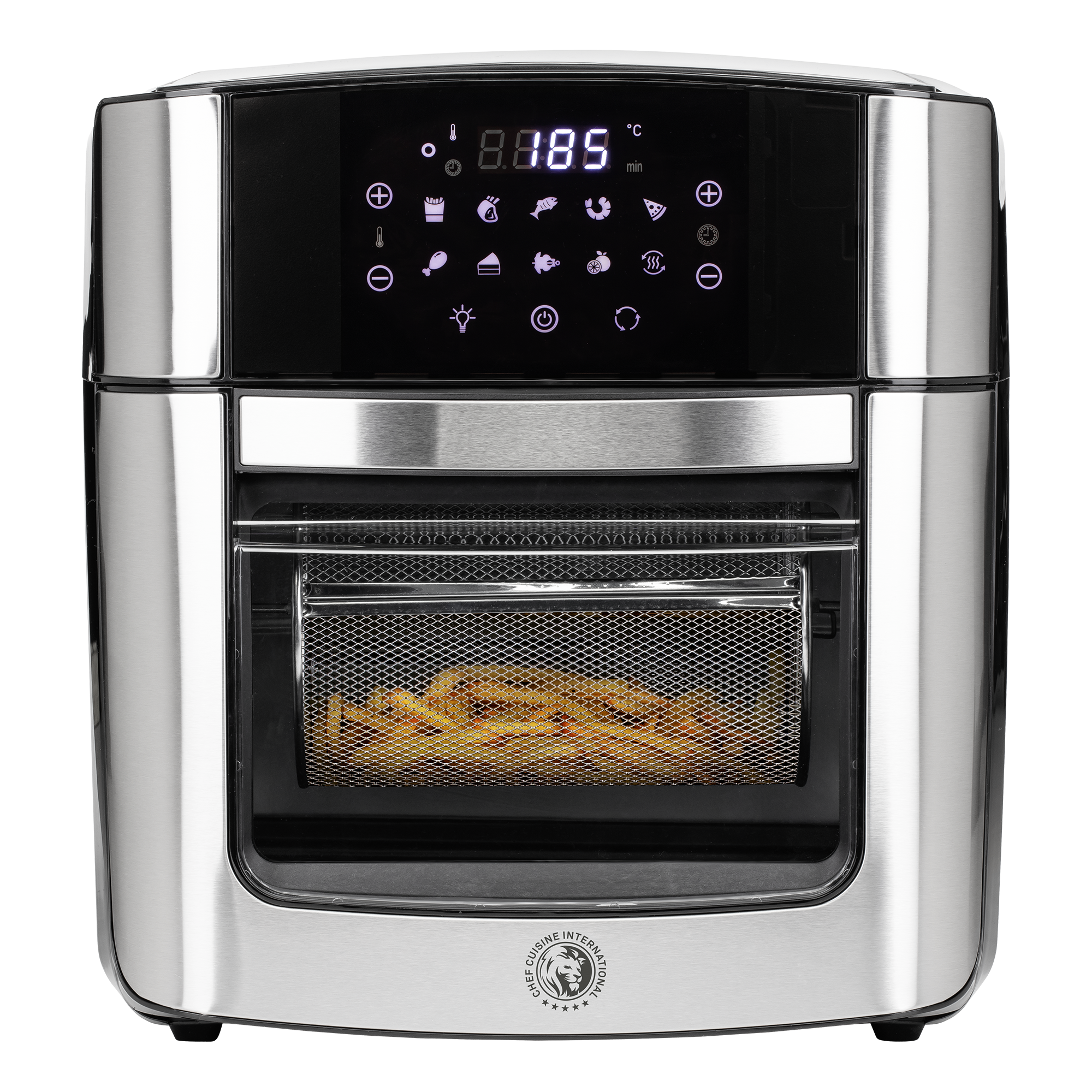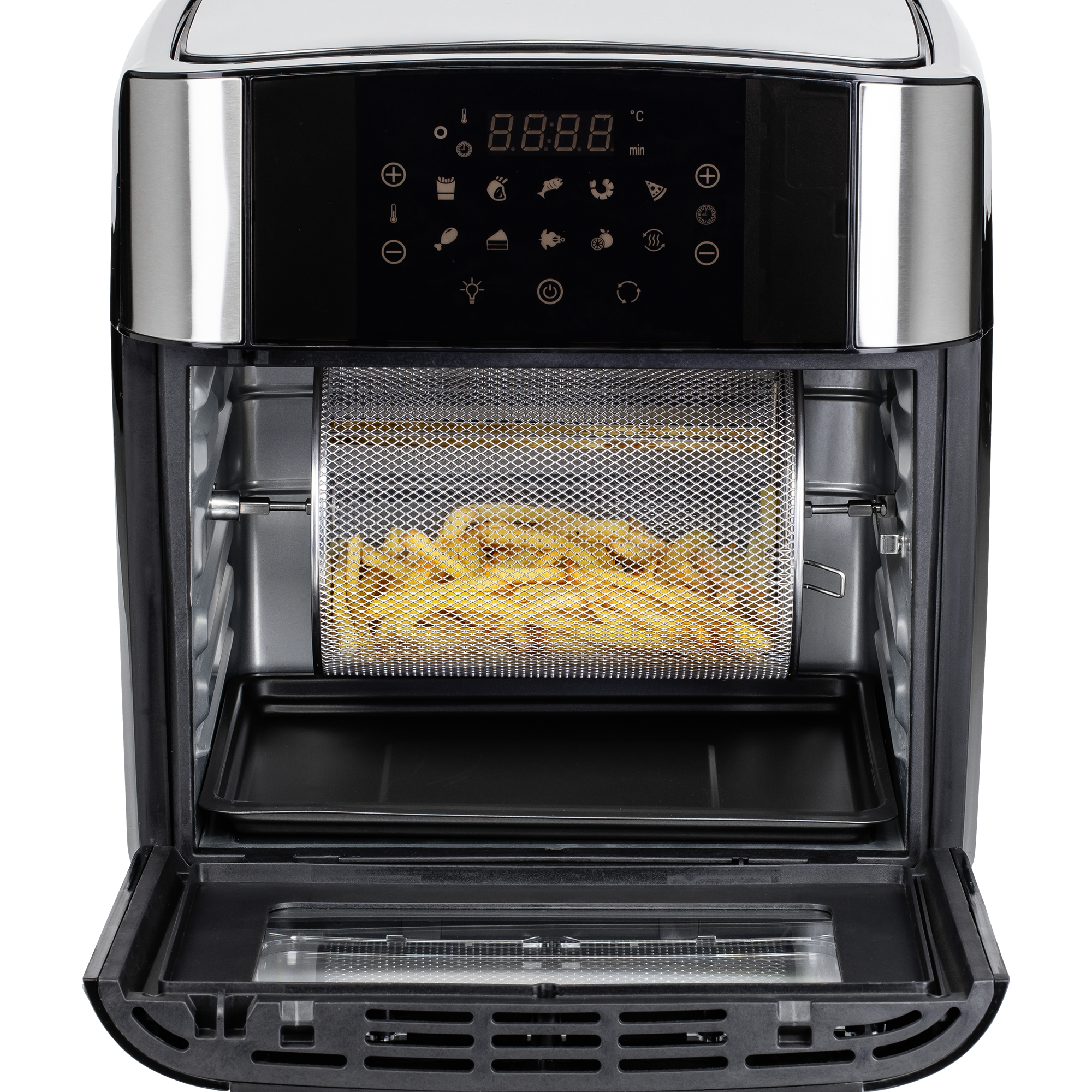 Durchdacht: Das seitlich platzierte, digitale Touch-Bedienfeld sorgt für eine einfache Handhabung. Ein großes Sichtfenster mit Licht ermöglicht die Kontrolle des Garvorgangs ohne Wärmeverlust. Die vielseitige 360°-Rotisserie-Funktion sorgt für gleichmäßiges Garen und rundum knusprige Ergebnisse. Ideal für Grillhähnchen, Spieße und Braten.