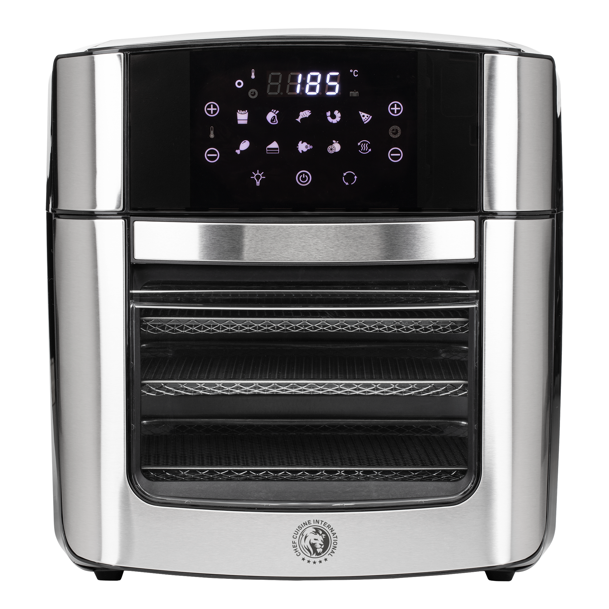Der Air Fryer Professional steht für modernes, gesundes Kochen in seiner vielseitigsten Form. Als Heißluftfritteuse, Mini-Backofen und Dörrgerät kombiniert er drei leistungsstarke Funktionen in einem kompakten Gerät. Mit einem großzügigen Garraum und professionellem Zubehör gelingen knusprige Pommes frites, saftige Steaks, krosse Pizzen und sogar ganze Grillhähnchen fettarm, effizient und geschmackvoll. Zehn vollautomatische Programme, ein intuitives Touch-Display und ein großes Sichtfenster mit Licht machen die Bedienung angenehm einfach und ermöglichen jederzeit volle Kontrolle über den Garvorgang. Dieses 3-in-1-Kochwunder im kompakten Design ist das praktische Multitalent für moderne Küchen.